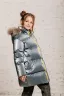 Зимнее пальто для девочки с утеплителем из синтетического "лебяжьего" пуха, плотность набивки 350 г/кв.м, легкое и теплое (от -5 до -30 градусов), обеспечит комфорт и защиту в любую непогоду. Ткань верха с интересным серебристым эффектом со всеми требуемыми пропитками для верхней зимней одежды защищает от внешних воздействий снега, ветра и влаги. Натуральная опушка из меха финского енота. Капюшон съемный, на молнии, регулируемый по ширине для более плотного прилегания. На рукаве контрастные трикотажные манжеты с названием бренда. Контрастная двухходовая молния, силиконовые брендированные нашивки. Карманы утеплены флисовой подкладкой. Модный силуэт - "лёгкий оверсайз". Смотрится очень эффектно! Всё для тепла и комфорта Вашей любимой принцессы!