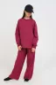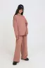 Спортивный костюм из футера мастхэв в детском гардеробе. Состоит их брюк-клёш и свитшота. Свитшот свободного кроя. Манжеты и горловина обработаны мягким кашкорсе. Брюки палаццо с карманами по бокам с поясом на мягкой резинке.
