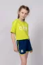 Модные и удобные трикотажные шортики - отличный выбор для девочек на летний сезон и для занятий спортом. По поясу шорт вставлен плоский утягивающий шнурок, что придает модели дополнительный акцент. На правой передней половинке шорт принт шелкография – милая ромашка. Надпись переводится как "Это хороший день; Хорошего дня". Эти шортики для девочек идеально подходят для повседневных летних прогулок.