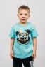 Футболка для мальчика прямого силуэта, с втачным коротким рукавом. Горловина круглая, обработана воротником из рибаны. Горловина спинки внутри укреплена бейкой из кулирки. Низ изделия и рукава обработан швом вподгибку. На полочке принт Шелкография. Надпись переводится как "Время отдыхать под пальмой".
