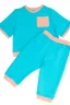 Уютный костюм для самых маленьких и немного постарше детишек. Футболка и брюки из приятного на ощупь футера двунитки. Удобные не стесняющие штанишки на широком поясе с манжетами по низу. Незаменим для повседневных прогулок, в детский садик или в качестве домашнего костюма. Легко стирается, не закатывается.
