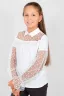Подростковая блузка белого цвета с отложным воротником. Рукава и передняя полочка выполнены из фатина. Состав материала: 70% - вискоза, 25% нейлон, 5% спандекс.