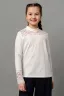 Блузка для девочек младшего и старшего школьного возраста, из трикотажного полотна – однотонная кулирка с лайкрой и кружева (дизайн и ширина кружева может меняться). Блузка прилегающего силуэта, с втачным рукавом, с воротником – стойкой. Спереди отрезная кокетка из кружева. На спинке отсутствуют линии членения. Рукав длинный одношовный. По низу рукава настрочено широкое кружево. Низ изделия подогнут.