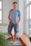 Мужской костюм. В комплекте футболка классического кроя с коротким рукавом. Яркие шорты с карманами, длина чуть ниже колена.