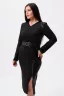 Изящное черное женское платье. Данная модель приталенная, выполнена в классическом стиле, рукав длинный, горловина v-образного выреза. Платье дополняют разрез снизу и молния над ним, вставка из эко-кожы и ремень на талии с круглой застежкой, что придает образу капельку дерзости. Такое платье послужит для любого повода, как деловое на работу, как вечернее и как праздничное. Изделие больше подходит для девушек с фигурой "песочные часы".