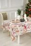 Скатерть из рогожки размером 180*150 с изображением оленей, печенья и елочных игрушек.