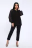 Яркая женская блуза свободного силуэта с объемным рукавом реглан. Рукав и низ переда выполнен из прозрачной эластичной черной сетки с блестками. Основная ткань креп, эластичная, средней плотности не просвечивает. В сочетании с элегантными брюками или юбками, блуза послужит отличным решением для выхода на торжество или праздник. За счет свободного кроя и рукава реглан вы не будете чувствовать скованность и дискомфорт в движении.
