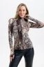 Водолазка - базовый элемент гардероба, который создаёт лаконичный образ и становится нежным дополнением к женственному изящному луку. Модель выполнена из мягкой вискозы, ткань лёгкая в уходе, хорошо тянется, что придаёт комфорт в движении и удобство в использовании. Благодаря приталенному крою и эластичным свойствам ткани, наша водолазка облегает фигуру. Воротник-стойка имеет комфортную высоту и плотно прилегает к шее. Современный тренд стиля и комфорта - длинный рукав с прорезью под пальчик создаёт уютный и изящный образ. Принт, имитирующий змеиную кожу, не оставит вас равнодушной, универсальность этой расцветки позволяет сочетать её с разнообразной цветовой палитрой и элементами одежды.