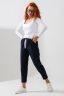 Брюки - бананы. Эластичный пояс с завязками для удобной посадки. Два глубоких боковых кармана. Защипы внизу штанин удлиняют ноги и создают женственный силуэт. Подходят всем. Широкая размерная линейка от 42-58. Для любого типа фигуры.
