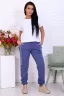 Брюки женские из футера 2-х нитка. Модель полуприлегающего силуэта на эластичном поясе с боковыми карманами. Вдоль бокового шва расположен лампас из отделочного полотна с фигурной вставкой, низ брюк обработан резинкой. Модель идеально подойдет для женщин, девушек как для дома, так и для прогулок.