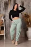 Модные женские брюки-бананы из смесовой ткани с содержанием льна. Свободные, зауженные к низу с помощью вытачек, широкий пояс на резинке, по бокам внутренние карманы. Длина брюк до щиколотки (рост модели 165 см). Очень комфортны и удобны в носке, не мнутся, отлично смотрятся со спортивной обувью.
