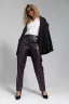 Хит сезона! Женские классические брюки на резинке подчеркнут женственность и элегантность фигуры и станут незаменимым элементом базового гардероба. Брюки прямые выполнены из качественной, плотной, приятной на ощупь кожи на замше, которая не деформируется после стирки и не вытягивается при активном образе жизни, обладает великолепным внешним видом и износоустойчивостью. Брюки с высокой посадкой и эластичной резинкой на поясе обеспечат Вам идеальный силуэт, подчеркнут все достоинства фигуры и создадут максимальный комфорт в движении. Пояс выполнен на специализированной поясной машине. На карманах стоят усиленные закрепки. Прямые брюки красиво оформлены и за счет удачного фасона невероятно стройнят. Женские брюки с карманами представлены до большого размера - плюс сайз, plus size. Благодаря своему крою и выверенному лекалу подойдут как стройным, так и полным женщинам, беременным девушкам или молодым мамам. Брюки бананы идеальны для создания строгих офисных луков и стильных повседневных, для школы и работы, а также праздничных вечерних образов. Данная модель выгодно подчеркнет Ваши достоинства и в домашней обстановке, удивите своих близких стильными образами. Однотонные цвета этих брюк гармонично сочетаются с любым верхом. Чёрный - классика современности и насыщенный шоколадно - коричневый Mocha Mousse - цвет года. Благодаря качественному материалу и модным цветам этого сезона, они будут радовать Вас всегда и создавать безупречный образ в любое время года. Проявите свой стиль и модный вкус, выбрав наш товар.