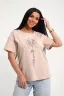 Футболка женская из гладкокрашенного трикотажа, хлопок 100%. Прямого силуэта, свободного облегания. горловина круглой формы. Рукав короткий. Низ изделия прямой. На полочке принт, шелкография.