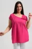 Майка женская, свободная, горловина асимметричная, нижняя часть левой кокетки полочки собрана, образуя рюшу. В боковых швах разрезы. Легкая, оригинальная майка их х/б ткани хорошее дополнение вашего летнего гардероба.