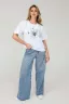 Женская футболка прямого свободного кроя - очень удобная, лёгкая и стильная. Эффектно смотрится и подходит на каждый день. Изделие изготовлено из высококачественного хлопка. Добавление эластана способствует длительному сохранению формы и цвета. Длина рукава указана в измерениях от точки основания шеи.