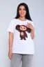 Футболка с принтом прямого силуэта, с коротким рукавом. Вырез горловины круглый, обработан кантом.