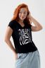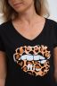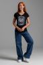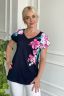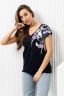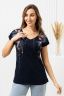 Футболка полуприлегающего силуэта, средней длины, с V-образной горловиной. Рукав цельнокроеный, короткий. Горловина и пройма обработаны бейкой из основного полотна.