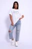 Футболка с оригинальным принтом изготовлена из мягкого 100% хлопка. Горловина обработана обтачкой с последующей отстрочкой. Рукава и низ в подгибку.