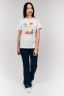 Женская футболка с принтом - шелкография - идеальный выбор для модных женщин, которые ищут базовую одежду. Футболка классического фасона, прямого кроя, с втачным коротким рукавом и круглой горловиной. Футболка новой коллекции подчеркнет ваш гардероб, а также идеально подойдет для создания ярких и стильных образов. Футболку будет удобно носить навыпуск или заправлять, отлично сочетается с юбкой, брюками с джинсами, а также можно одеть под пиджак, жакет или кардиган. Футболка выполнена из мягкого хлопкового полотна. Уход за изделием: стирать футболку с вещами похожего цвета и вынимать сразу после стирки. Гладить с изнаночной стороны. После стирки футболка сохранит свой первозданный вид, горловина не вытягивается, а боковые швы не ведет. Модель рассчитана на рост 164-170см. Полотно: Кулирная гладь-пенье. Состав: 100% Хлопок. Плотность 160 гр.