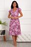 Легкий женский халатик из натурального трикотажа. Приталенный с поясом в боковых швах. Удобные накладные карманы. Расклешённый к низу. Длина миди. Игривый рукав крылышко. Горловина V-образной формы. Для более комфортной посадки на фигуре, на полочках и спинке рельефные швы. Застежка на тесьму молнию.