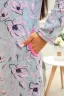 Халат женский выполнен из набивного велюра на серебристой молнии с капюшоном. Халат окантован по кругу отделкой контрастного цвета, рукава длинные, низ изделия и рукавов подшиты. Халат комфортный, мягкий, уютный, идеально подойдет для дома и отдыха.