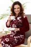 Халат очень красивый бордового цвета, мягкий и теплый. Кармашки удобные, но застежка иногда поддается трудно. В целом покупкой довольна.