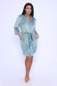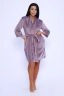 Женственный халатик на запах с поясом полуприлегающего силуэта длиной чуть выше колена с воротником - шалькой. Выполнен из нежной бархатной ткани приятных оттенков - велюра, которая очень приятна к телу, в меру теплая и практически не мнется, что делает ношение вещи удобнее. Халат оснащен внутренним поясом. По краю борта декоративная отстрочка шириной 0,5 см. Рукав втачной длиной 3/4. Укороченная длина рукава удобна для ношения на кухне. Два кармана с фигурным входом расположены в боковых швах. На уровне талии две петли для пояса. Низ изделия и рукава подогнуты на плоскошовной машине, длина пояса 170 см. Халат на запах - незаменимая вещь в гардеробе каждой женщины, комфортна в ношении и может быть прекрасным подарком для любимых.