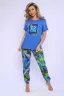 Костюм состоит из футболки и брюк. Футболка свободная с короткими рукавами. Брюки с карманами и на резинке внизу.