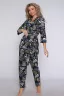 Домашний костюм состоит из укороченного халата и брюк. Брюки прямые с карманами. Халат запашной на поясе. Рукав 3/4 с манжетом. В боковых швах карманы. Удобный и практичный вариант для дома и сна.