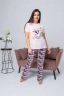 Костюм женский состоит из футболки с коротким рукавом из ткани кулирка гладь, на полочке красивый принт, и брюк из ткани кулирка, принт - клетка. Костюм для дома, отдыха, комфортный, удобный, не меняет цвет после стирки.