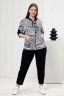 Костюм состоит из толстовки и брюк. Толстовка прямая, свободная, с капюшоном, на молнии. Рукав короткий, на манжете. На полочке расположены фигурные накладные карманы. Брюки на поясе, с боковыми карманами. В верхней части передних половинок по шву притачивания пояса расположены складки.