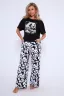 Красивый женский костюм двойка от ивановского производителя состоит из футболки и брюк в стиле палаццо. Этот стильный домашний комплект выполнен из мягкого и приятного на ощупь трикотажного материала из 100% хлопка. Он идеально подойдет для осеннего и весеннего сезонов. Эта женская пижама с брюками кюлотами сочетает женственность и удобство. Отличный выбор для повседневного использования дома и сна. Брюки клеш придают образу особый шарм и делают костюм популярным среди молодежи и подростков. Благодаря широким брюкам, пижама выглядит модно и трендово. Этот ночной комплект предлагается в нескольких размерах, включая большие размеры, и подходит стройным девушкам и женщинам, а также полным дамам plus size. Благодаря свободному крою и удобным брюкам трубам, он также идеально подойдет для беременных женщин, давая им свободу движения и комфорт в домашних условиях. Хлопковая пижама изготовлена из качественного турецкого трикотажа (кулирка), который приятен к телу и обеспечивает комфорт во время ночного отдыха. Она подойдет для любого времени года, особенно на осень, весну, зиму. Этот удобный и стильный комплект пижамы с брюками станет отличным выбором для роддома, повседневного отдыха дома или даже для новогодней фотосессии и пижамной вечеринки. Сочетание комфорта, красоты и функциональности делает эту пижаму невероятно привлекательной. Домашний костюм, пижама - это прекрасный подарок себе, маме, сестре, бабушке, жене на новый год, день рождения или без повода.