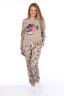 Уютная женская пижама с брюками и кофтой из полуприлегающего кроя. Дизайн позволяет использовать данную модель как пижаму для сна, так и в качестве костюма для дома. Модель выполнена из высококачественного интерлока.