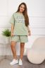 Костюм женский, выполнен из трикотажного полотна кулирка. Костюм состоит из футболки и шорт. Шорты с карманами, со строчкой на передней части полочки вдоль. Футболка свободного силуэта, вточная горловина, на полочке выполнена печать.