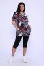 Женский комплект туника и бриджи. Туника из кулирки прямого силуэта длиной до бедер, с коротким рукавом. Бриджи из кулирки с лайкрой облегающего силуэта длиной ниже колен.
