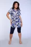 Костюм состоит из туники и бридж. Туника свободного кроя с манжетами на спущенном плече, боковыми карманами и полукруглым низом. Неотъемлемый элемент домашнего гардероба.