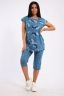 Костюм женский с бриджами из 100 % хлопка. Футболка со спущенным плечом и декоративным карманом. Силуэт полуприлегающий.