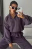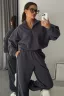 Купила этот костюм и осталась очень довольна! Мягкий, тёплый материал приятно обволакивает тело, обеспечивая уют даже в прохладную погоду. Удобная толстовка с v-образным вырезом отлично сочетается с широкими брюками, создавая стильный оверсайз-силуэт. Единственным минусом стало то, что застёжка-молния немного жёсткая.