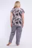 Костюм состоит из блузки и брюк. Брюки полной длины с притачной резинкой, низ изделия обработан швом в подгибку. Блузка со спущенной проймой, по бокам два функциональных кармана.
