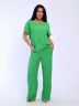 Отличная весёлая расцветка ярко зелёный костюм. Пошив аккуратный. Ткань не мнётся к телу приятная . Взяла на размер меньше!!! И всё в пору. Брюки длинные на рост 165 см. Благодарность данному магазину за прекрасный товар!!! Рекомендую