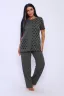 Домашний костюм женский с брюками. Футболка полуприлегающего силуэта с карманом. Рукав короткий. Брюки прямого кроя на резинке.