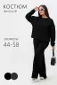 Костюм спортивный женский двойка штаны + кофта выполнен из плотной ткани без начеса. Брюки с карманами и поясом на резинке, у кофты округлый воротник и длинный рукав на манжете. Комплект прямого свободного силуэта, Идеального подходит для повседневной носки.