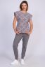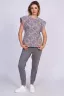Трикотажный костюм с зауженными брюками и манжетами внизу и футболкой с рукавами свободного покроя и вшитыми подплечниками. Модель выполнена из кулирного волокна с лайкрой