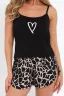 Шорты выполнены из легкого хлопкового трикотажа, что обеспечивает отличную воздухопроницаемость и комфорт в жаркую погоду. Резинка на поясе гарантирует удобную посадку и свободу движений. Топ на тонких бретельках добавляет комплекту женственности и легкости, подчеркивая фигуру.