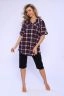 Костюм состоит из туники и бридж. Туника с рубашечным воротником, полукруглым низом и короткими рукавами. Бриджи с карманами.