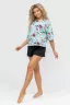 Женский модный костюм - это невероятно удобный вариант одежды для дома, сна, отдыха или пижамной вечеринки. Домашний костюм двойка сшит из натурального хлопка, лёгкого и приятного материала. Пижама состоит из свободной футболки с новым трендовым дизайном ткани и свободных шорт. Стильный костюм комфортно садится по фигуре, выглядит женственно и привлекательно, очаровывая всех. А также модель такого плана - это отличная идея для полезного и практичного подарка на день рождения, 14 февраля, 8 марта и любой другой праздник. Мы уверены, что эта хлопковая пижама подарит Вам истинное наслаждение при каждодневном использовании. Выбирайте деликатный способ стирки при температуре 30°С, тогда домашний комплект прослужит долго.
