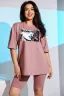 Костюм женский - свободная футболка и облегающие бриджи выполнен из кулирки с лайкрой. Спереди на футболке оригинальный принт. Горловина обработана бейкой, низ изделия и рукав подшиты. Костюм очень удобный и приятный к телу, идеально подойдет как для дома, так и для отдыха и прогулок.