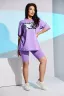 Костюм женский - свободная футболка и облегающие бриджи выполнен из кулирки с лайкрой. Спереди на футболке оригинальный принт. Горловина обработана бейкой, низ изделия и рукав подшиты. Костюм очень удобный и приятный к телу, идеально подойдет как для дома, так и для отдыха и прогулок.