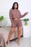 Костюм домашний с шортами из мягкого трикотажа СОТЫ. Комфортный комплект состоит из стильного, укороченного лонгслива с длинным рукавом на манжете и шорт с удобными боковыми карманами. Оригинальный 3Д рисунок, образованный путём сложного переплетения волокон, внешне напоминает пчелиные соты. Полотно мягкое, эластичное и прочное, легко стирается, практически не мнётся, не деформируется.