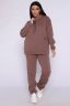 Теплый костюм выполнен из футера 3-х нитки с начесом с содержанием хлопка премиум качества. Костюм состоит из объёмной толстовки в стиле "оверсайз" с накладными карманами и джогеров. Низ брюк и рукавов на толстовке обработан резинкой. Пояс брюк на резинке, для удобства по бокам расположены прорезные карманы. Перед использованием желательно постирать костюм при 30 градусах, тогда излишний ворс примнется.